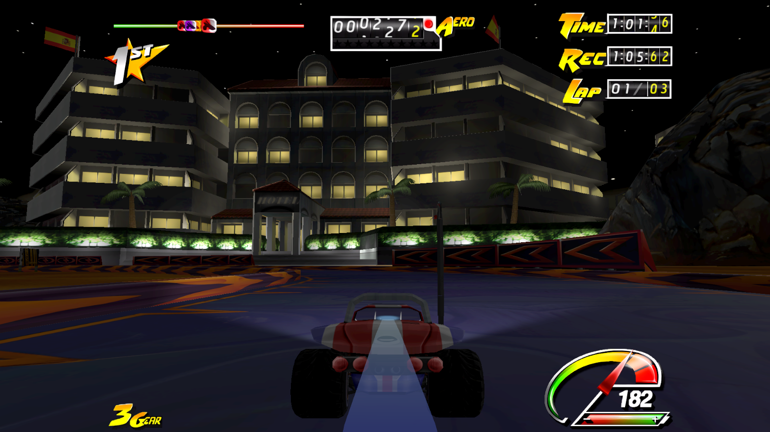 - 5 different gamemodes: race, stunts, drift, time trial, knockout